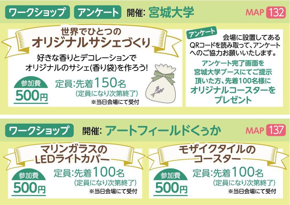| 132 宮城大学 | ワークショップ(詳細は裏面) |