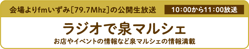 | 139 fmいずみ | 公開生放送(10-11時)、場内アナウンス、BGM |