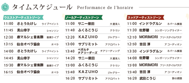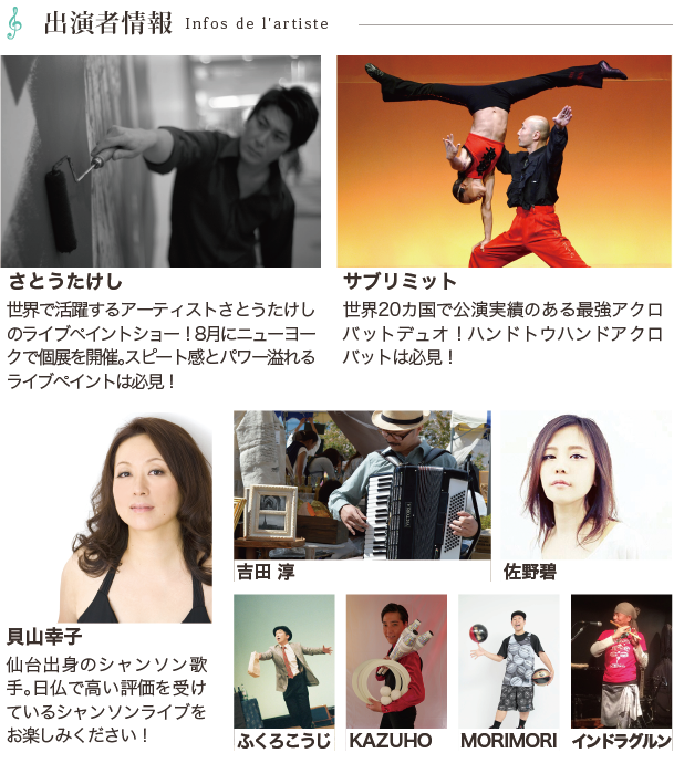 当日、3つのアーティストゾーンでたくさんのパフォーマー達が会場を盛り上げます!